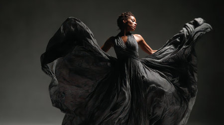 Woman dancing in slow motion with flowing fabric, studio light, art-fashion .