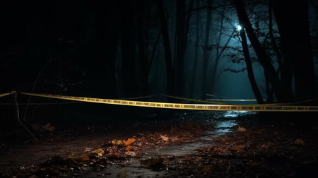 Warning tape in forest. Generative AI