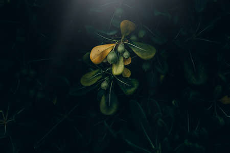 Green leaves. Low key modern style toned background image