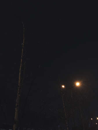 The path at night goes into the distance. Light in the park late in the evening. An empty path. A gloomy evening in the city. A way for one person.