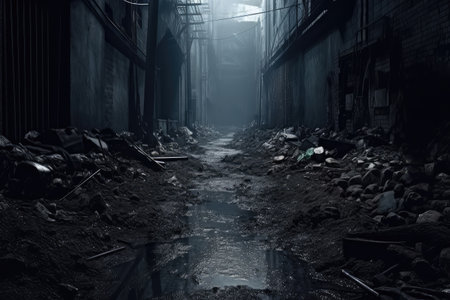 dark abandoned city dirt trash everywhere professional photography