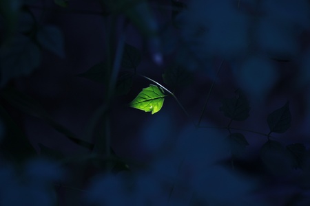 a little green leaf in dark forest