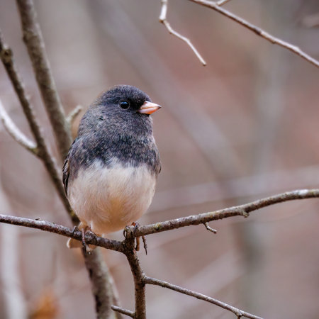 Dark-eyed Junco bird Junco hyemalis perching on a branch during the Winter