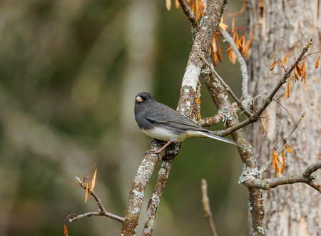 Bird on branch, dark-eyed junco,Junco hyemalis