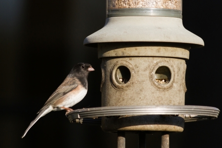 Male dark-eyed junco (Junco hyemalis) in the feeder