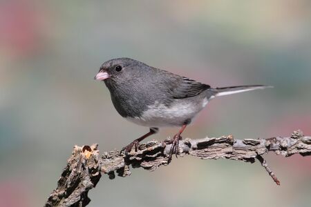 Dark-eyed Junco (junco hyemalis) on a branch in winter with a colorful background