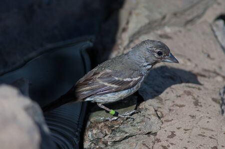 Gran Canaria blue chaffinch Fringilla polatzeki. Female after bathing. Natural Reserve of Inagua. Tejeda. Gran Canaria. Canary Islands. Spain.
