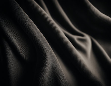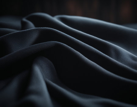 A high-quality dark fabric texture showcasing smooth draping and elegant lines. Perfect for fashion design, interior decor, and artistic projects.