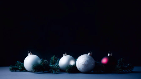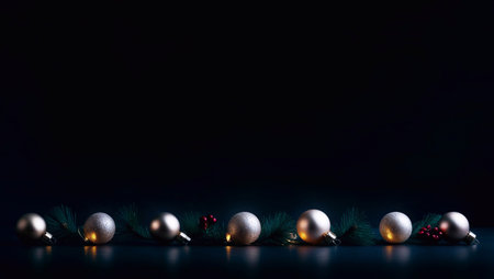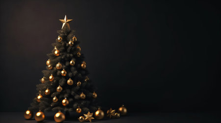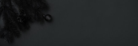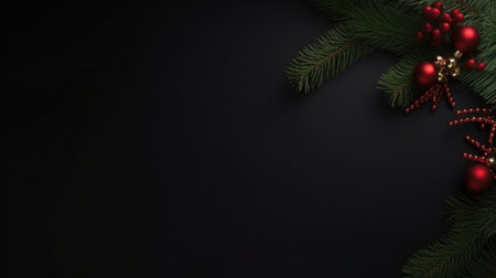 Dark minimalist background with Christmas decorations and text area