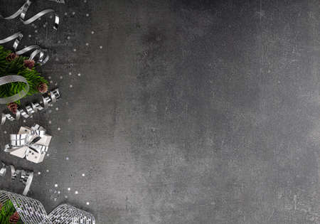 New Year holiday decorations on simple dark background with text area