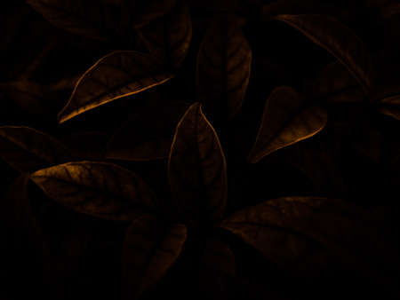 Textures of abstract black leaves for tropical leaf background. Flat lay, dark nature concept, tropical leaf