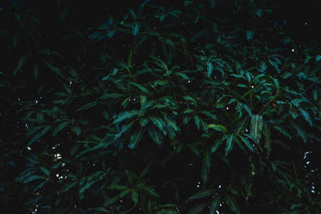 The leaves in the rain forest, dark shadows in low light Green in the forest