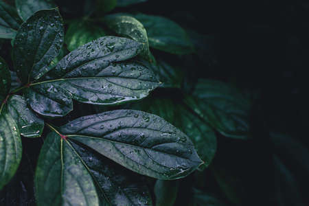 Close up of green leaves with dark background. Nature concept. Selective focus.