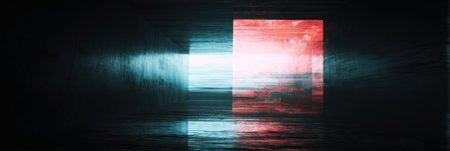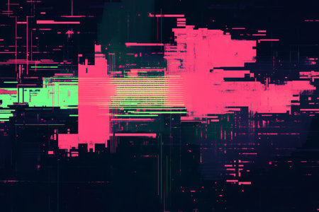 Glitch effect creating digital distortion with chaotic noise in a dark setting