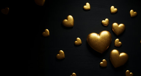 Golden hearts on black background. Valentines day concept. 3D Rendering