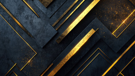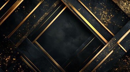 This striking image showcases an elegant geometric design featuring gold accents on a textured black background, ideal for luxury and modern themes.