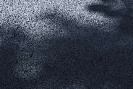 Dark surface of fresh asphalt with a shadow from the crown of a tree. Repair of the road surface.