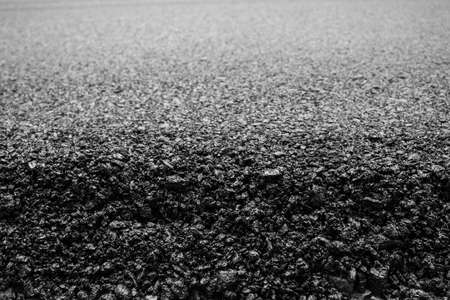 This image showcases a close-up view of asphalt, displaying textures and contrasts. Dark, granular material borders a smoother, lighter surface. The composition highlights details, suggesting outdoor settings or construction contexts. Suitable for various applications, including design, illustration, and commercial purposes.