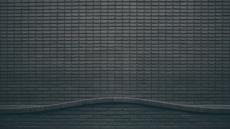 solid black color brick wall textured abstract background. closeup low light shot