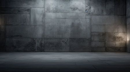 3D rendering of a black concrete wall and floor in a room