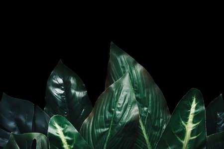 abstract black green leaves for tropical leaf background. dark nature concept, tropical leaf. Creative mystery concept