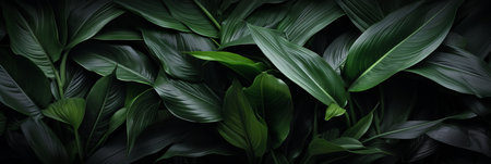 abstract stunning panorama green leaf texture, tropical leaf foliage nature dark green background. green banners nature tropical concept.