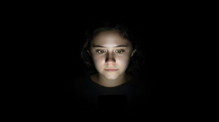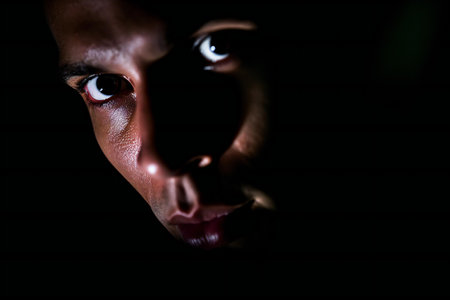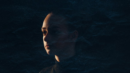 Close-up of a dark portrait of a very dimly lit woman. The woman is looking at infinity, transmitting a feeling of sadness or depresion