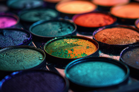 Vibrant beauty eyeshadow palette with shiny, bright colors generated by artificial intelligence