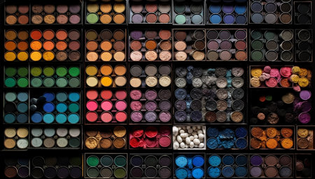 Vibrant colors in a large collection of eye shadow palettes generated by artificial intelligence