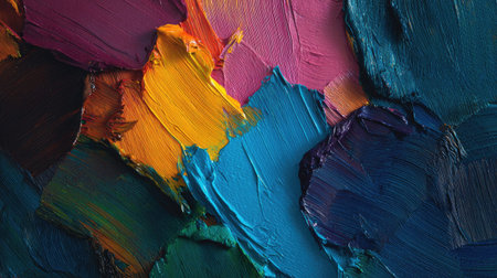 This vibrant abstract texture features colorful layers of thick paint in rich shades, creating a dynamic visual experience perfect for artistic projects or backgrounds.