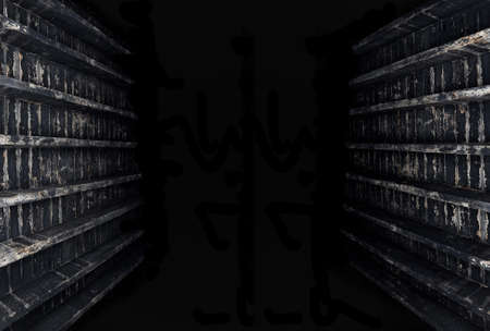 Dark corridor. Mystical interior of dark empty corridor, tunnel in an abandoned house. Dark mysterio