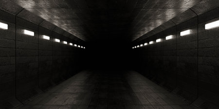 Dark tunnel with dim lighting