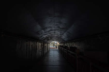 dark tunnel in the dark with light.