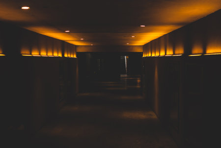 Dark corridor college at night