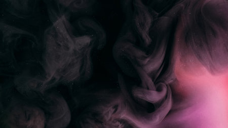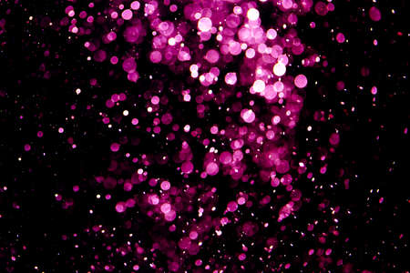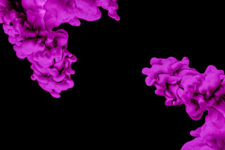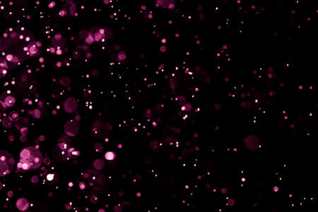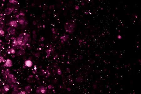 Night mist. Paint water mix. Defocused purple pink color glitter particles texture smoke cloud floating on dark black abstract art background.