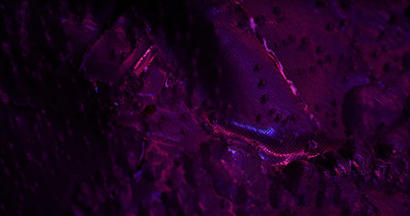 Psychedelic violet. Wet highlights. Fabric texture with iridescent light. Rough purple background with sparkle spots changing color rainbow effect.