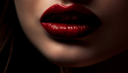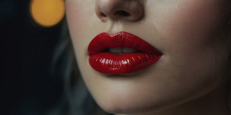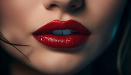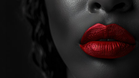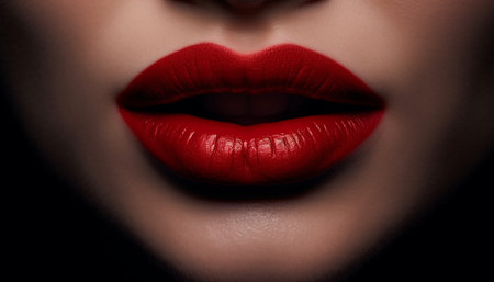 Stunning close-up image showcasing bold red lips, emphasizing rich color and smooth texture against a dark background, perfect for beauty and fashion themes.