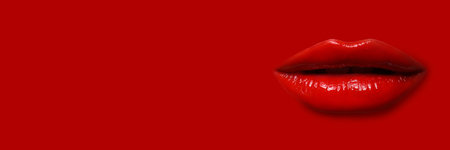 Woman's lips against background matching color of her lipstick. Banner design with space for text