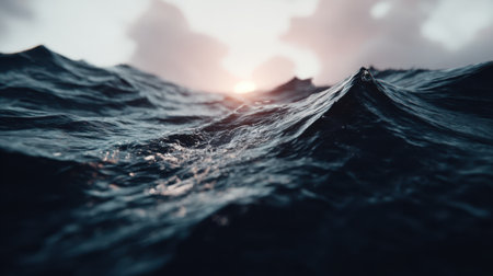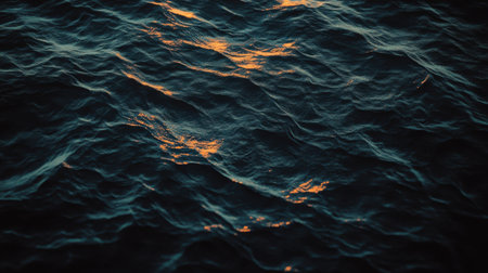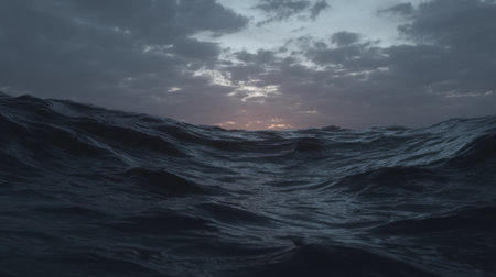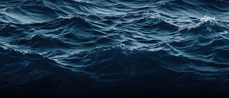AI generated dark ocean water surface with flowing waves deep blue tones moody calm atmosphere natural power mystery and clean copy space