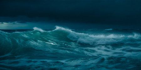 A breathtaking scene capturing dark ocean waves beneath a dramatic sky, evoking feelings of awe and admiration for nature's raw and untamed beauty.
