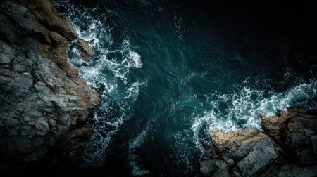 Dark Teal Ocean Rocks Dramatic Coastal Scene Serene Nature Seascape Moody Atmosphere Tranquil Water