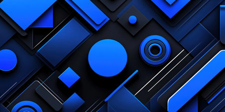 Abstract background featuring layered geometric shapes in blue and black tones creating modern digital pattern suitable for design projects.