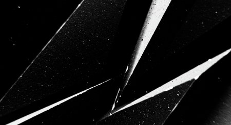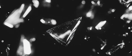 Overlay texture of broken glass with sharp points on a dark background for creative designs