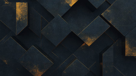 Explore this striking abstract composition featuring a variety of geometric shapes and textures in rich gold and deep black. Perfect for modern design.