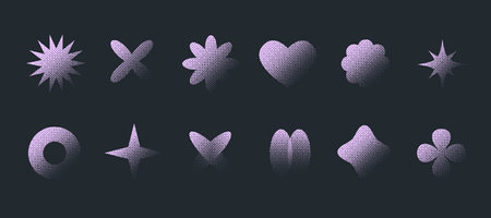 Y2K aesthetics shape set in pixelated bitmap halftone style
