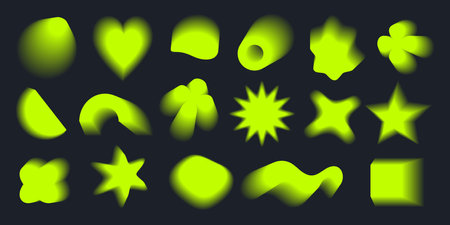 A large set of abstract blurred shapes.; Gradient fill in retrofuturism style; retro wave; y2k; 2000s. Bright acidic colors on a black background