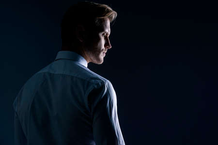 Mysterious portrait of man with light and shadow on face