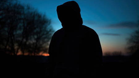 Contemplative silhouette of a man against a twilight sky, evoking mood and mystery