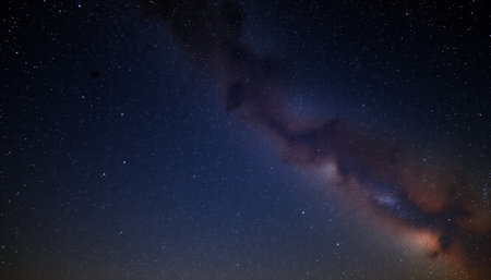 Night sky with stars and milky way galaxy. Long exposure photograph.