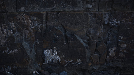 Black texture. Stone background. Dark marble. Rock texture. Rock surface with cracks. Rock pile. Paint spots wall. Grunge Rough structure. Abstract texture.